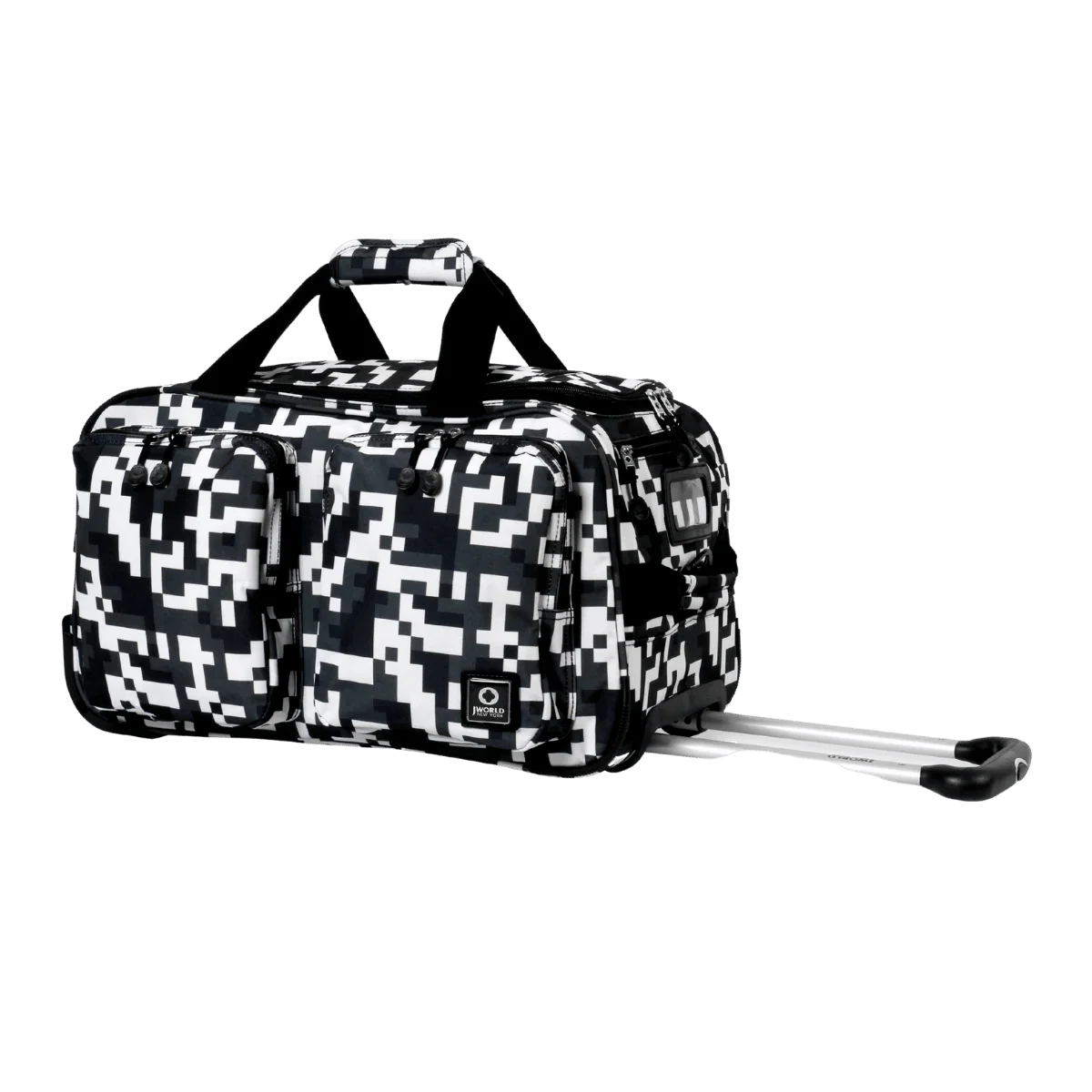 The Duane Rolling Duffel Bag combines convenience and style for stress-free travel. It features a recessed two-stage locking handle with a push button for effortless maneuvering, a large U-shaped zipper opening for easy access, and multiple exterior pockets for organized packing. With a detachable and adjustable shoulder strap and soft, noiseless wheels, this duffel is designed for comfort and stability. The bag fits perfectly under airplane seats or in overhead compartments, making it the ideal travel companion.